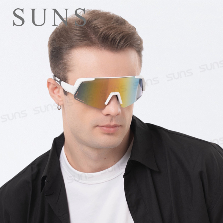 運動偏光太陽眼鏡 大框風鏡騎行眼鏡 炫彩白框 S517