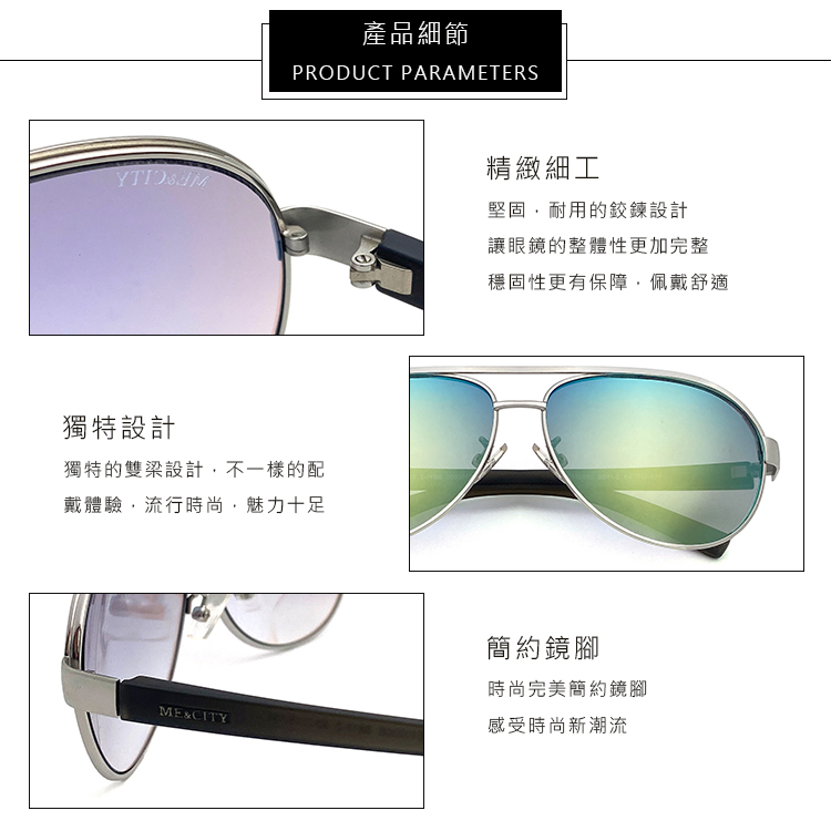 ME&CITY 經典雙槓飛行員太陽眼鏡 抗UV(ME 110005 B611)