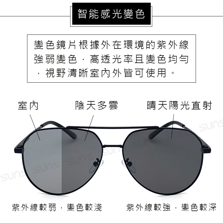 智能感光變色偏光墨鏡 時尚飛行員鏡框 S219