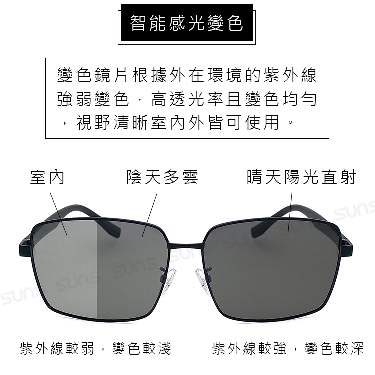 智能感光變色偏光墨鏡 時尚方框墨鏡 S507