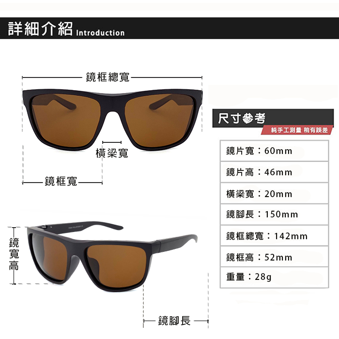 • 偏光鏡片,防眩光反光折射光等,視野更清晰