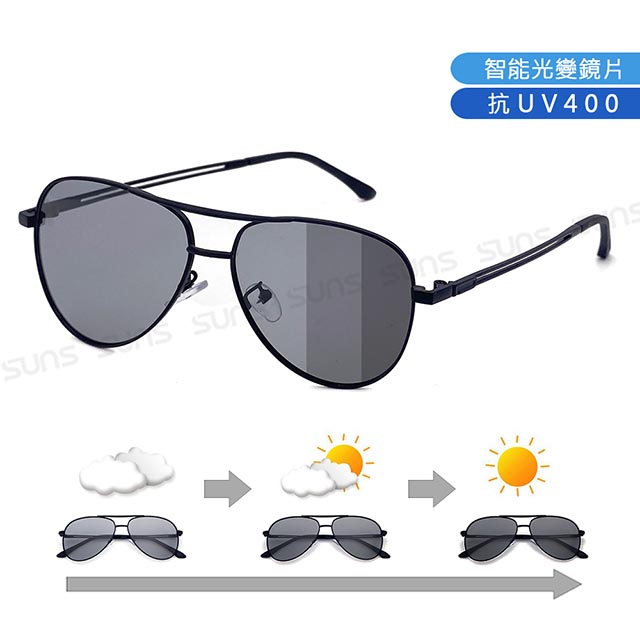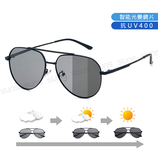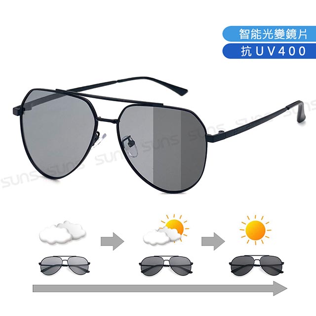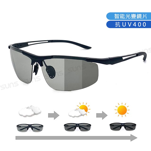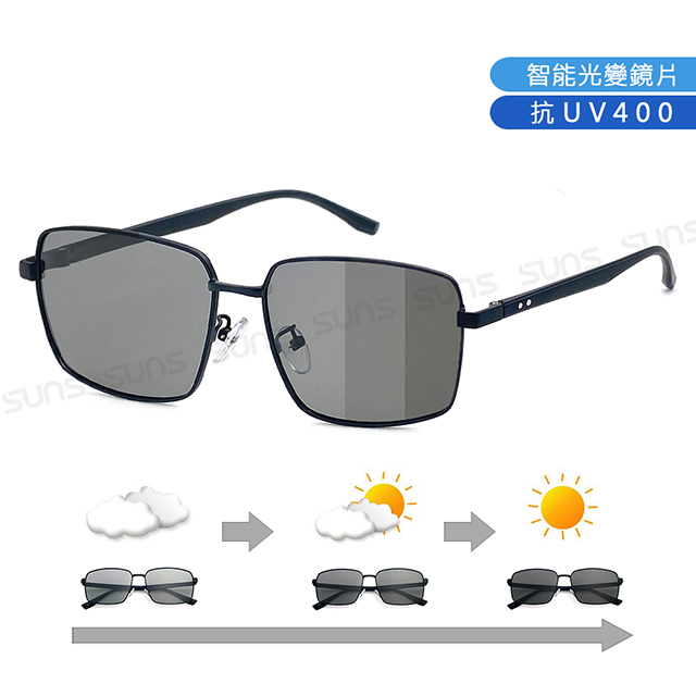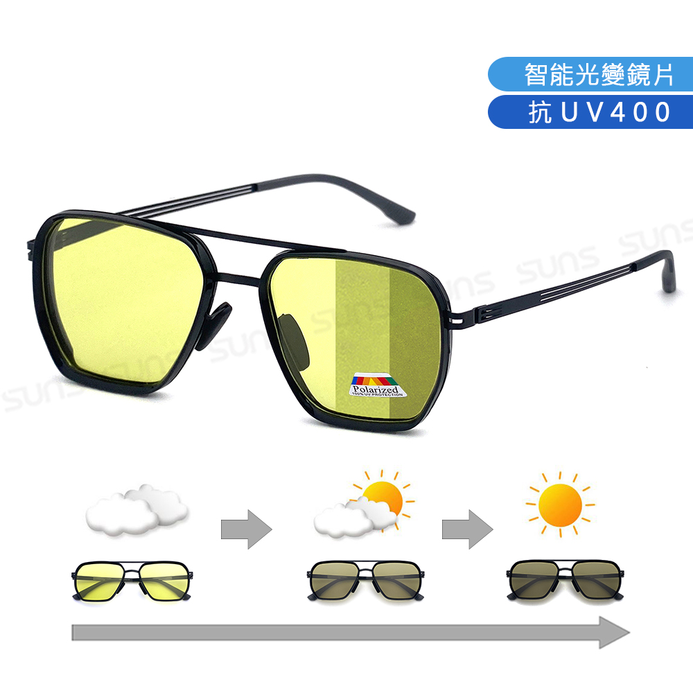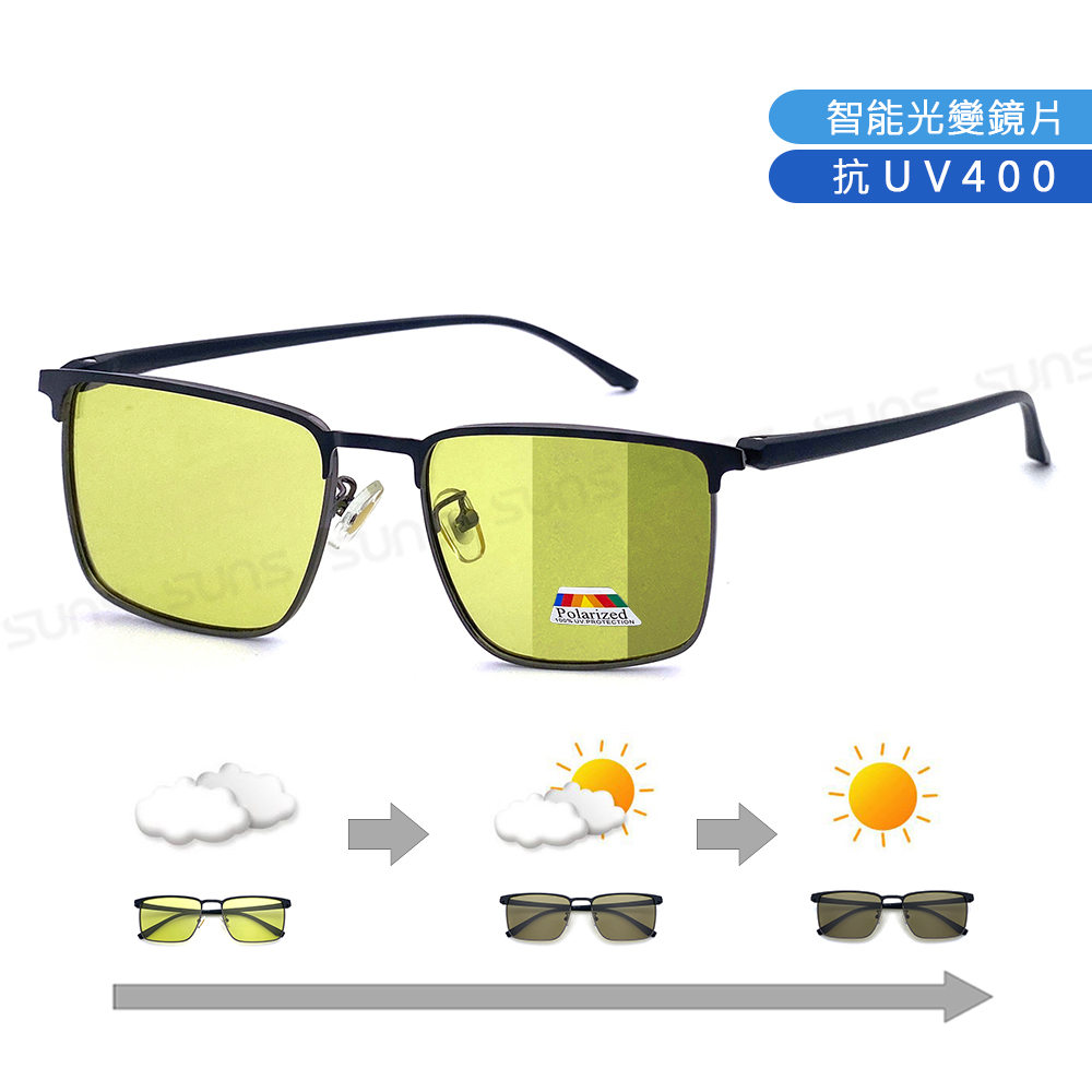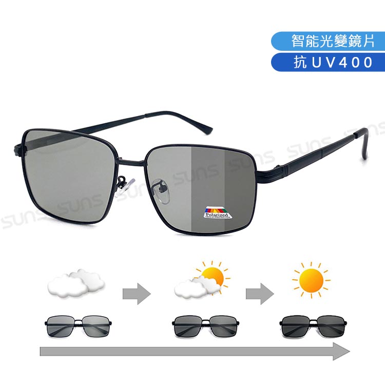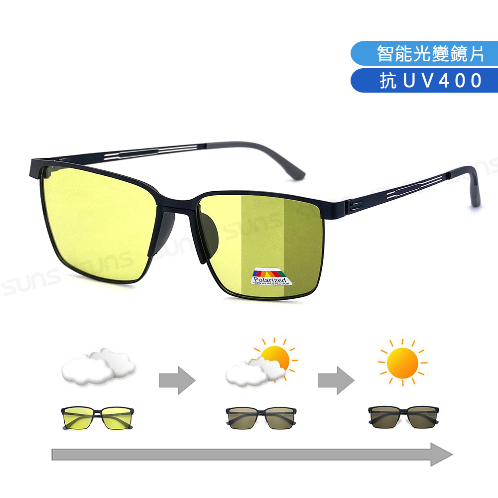 日夜兩用感光變色偏光墨鏡 薄鋼眉型框墨鏡 S739