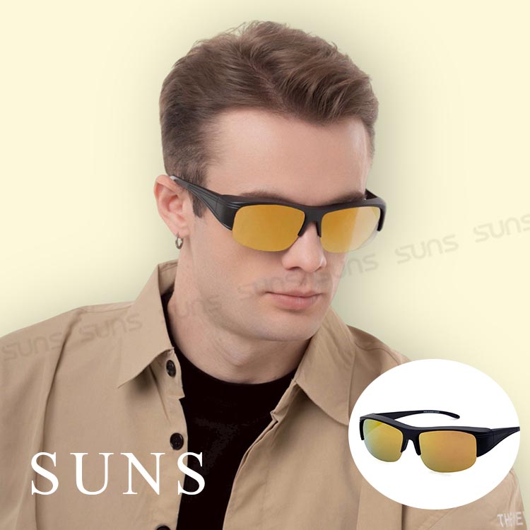 包覆式偏光套鏡 裸感藕杏方框墨鏡 抗UV